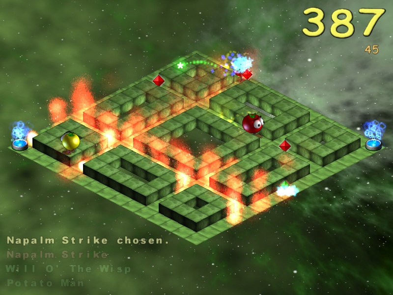 No Tengo Tomates es un juego de laberinto donde el objetivo es aplastar los tomates que te persiguen. Es una actividad de ocio extrema que culmina con la siguiente pregunta: ¿Cuántos tomates puedes aplastar en diez minutos? Si tienes tiempo libre, ¡este juego tiene a las verduras esperando a ser eliminadas! Este juego ofrece una jugabilidad sólida con hermosos gráficos 3D isométricos basados en OpenGL API y buena música. También incluye un reproductor de MODs, y puedes usar tu propia música de fondo. Simplemente copia tus archivos XM/S3M/IT/MOD al subdirectorio «música» de No Tengo Tomates y el juego los reproducirá. Puedes presionar F1 para saltar una canción dentro del juego. Hay espacio para 128 MODs.